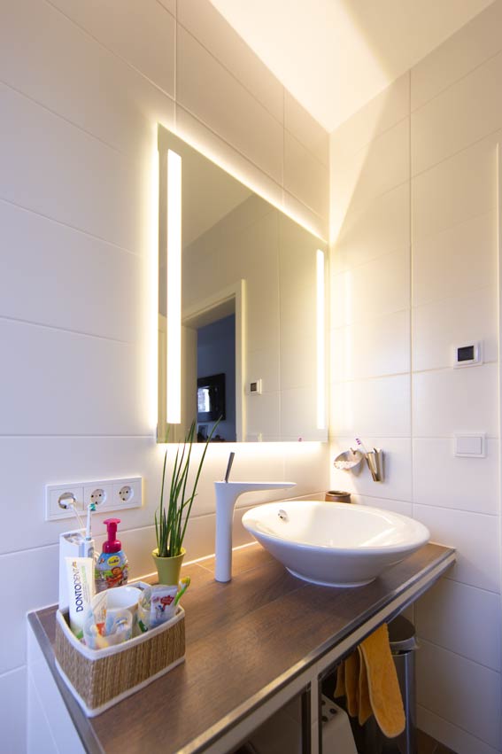 Abstellmöglichkeiten auf Wannenarmatur und Waschbecken